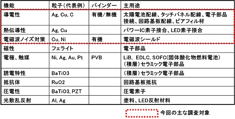 我々はこの状況に鑑み、機能性ペーストの調査を実施した。調査のポイントは機能性ペーストに対する要求仕様、市場規模、動向を明確にすることで、各社の機能性ペースト材料の開発動向や参入状況についても明らかとした。