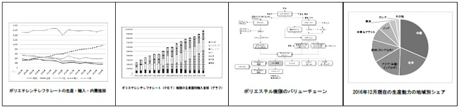 また、さらに前書では情報が少なかったPBT樹脂、新規で追加したバイオ系の原料を使用するバイオポリエステル樹脂およびポリ乳酸に関してもグローバルな情報と国内情報を合わせて盛り込んだ。